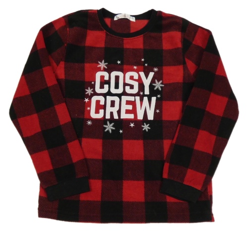 Černo-červená kostkovaná fleecová pyžamová mikina s nápisy a vločkami