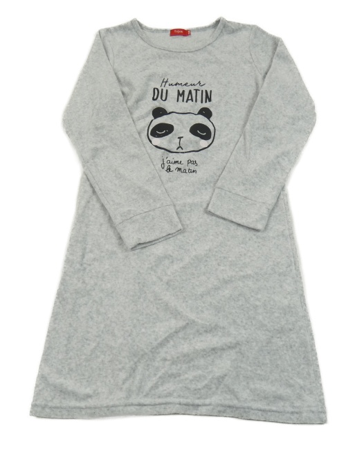 Světlešedá melírovaná sametová noční košile s pandou a nápisy TisSAiA