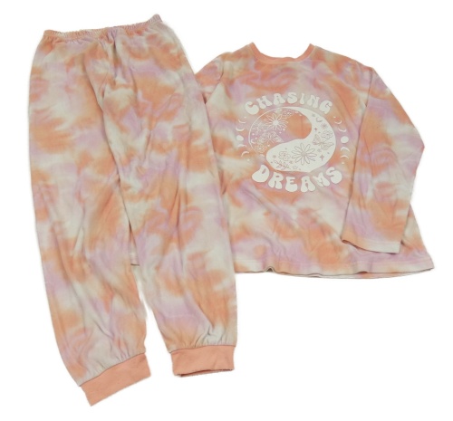 Růžovo-bílé batikované plyšové pyžamo s potiskem Primark