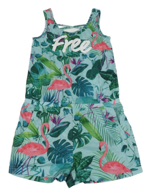 Mintovo-barevný kraťasový overal s plameňáky a květinami