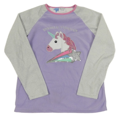 Fialovo-světlešedé fleecové pyžamové triko s jednorožcem