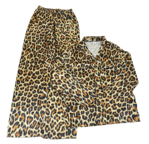 Béžovo-hnědé leopardí saténové pyžamo
