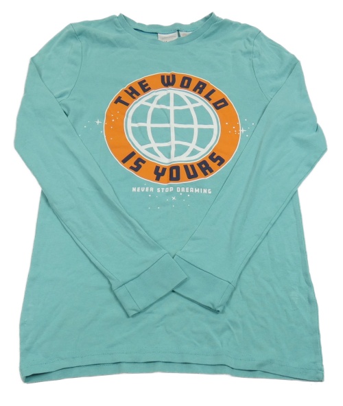 Mentolové pyžamové triko se zeměkoulí a nápisy H&M