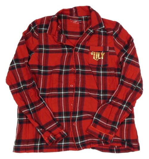Červeno-černo-bílá kostkovaná pyžamová košile s nápisem Primark