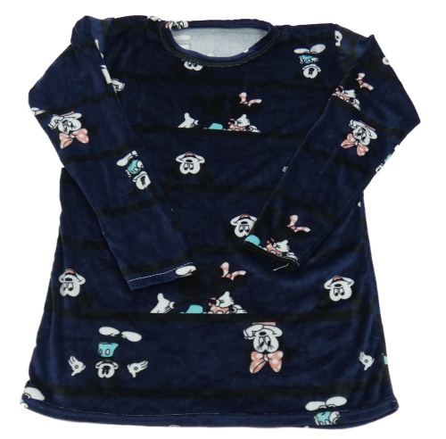 Tmavomodro-černé pruhované plyšové pyžamové triko s Minnie a Mickeym