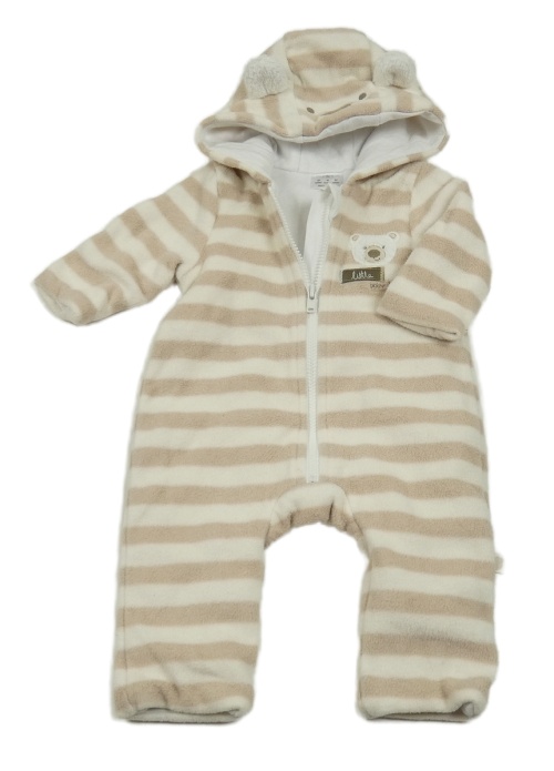 Smetanovo-béžová pruhovaná fleecová zateplená kombinéza s medvědem a kapucí F&F
