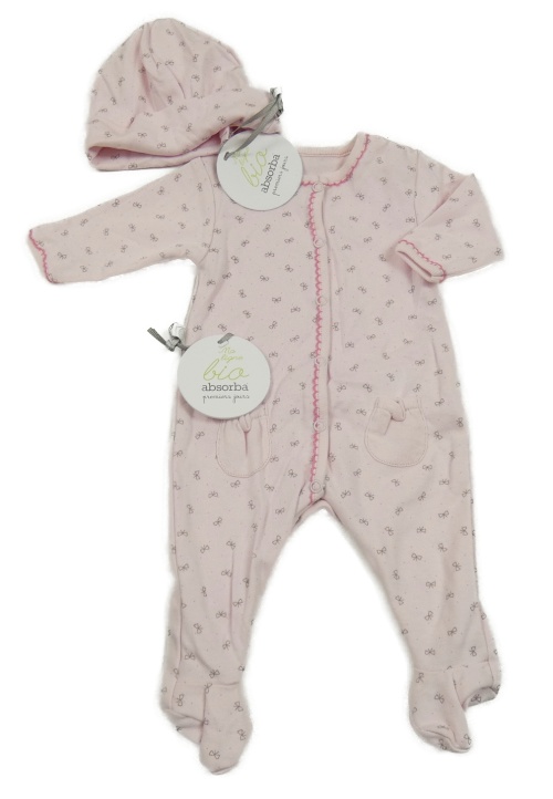 Nové - 2Set - Světlerůžový overal s mašličkami + čepice absorba