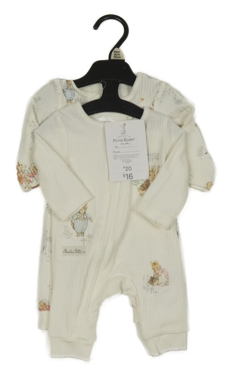 Nové - 2x - Smetanový žebrovaný overal Peter Rabbit