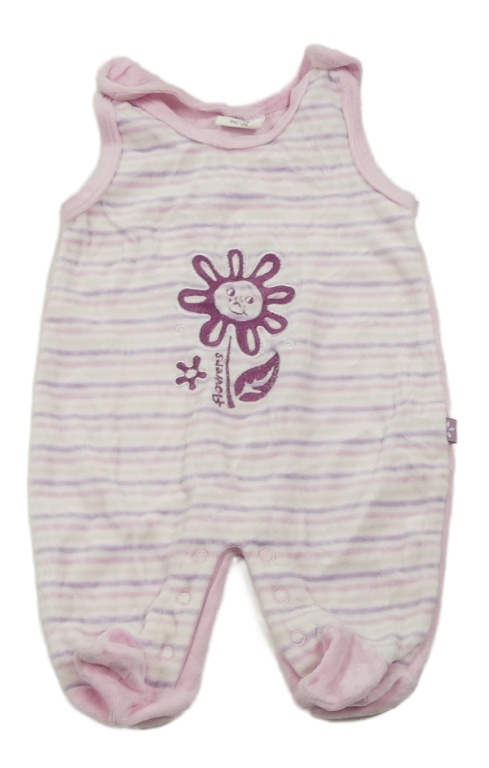 Bílo-světlerůžové pruhované sametové dupačky s kytičkou