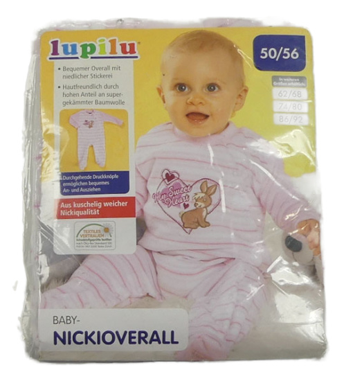 Nové - Růžovo-bílý pruhovaný sametový overal s králíkem Lupilu