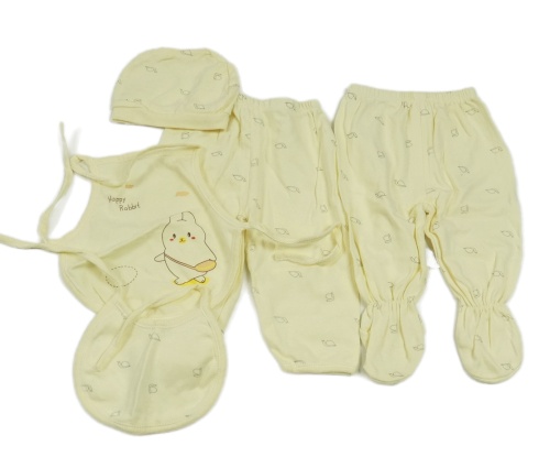5 set - žluté lehké tepláky + polodupky + bryndák + slinták + čepice