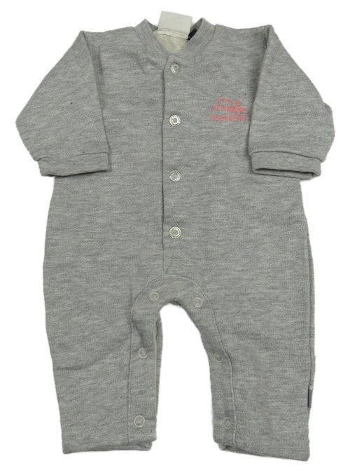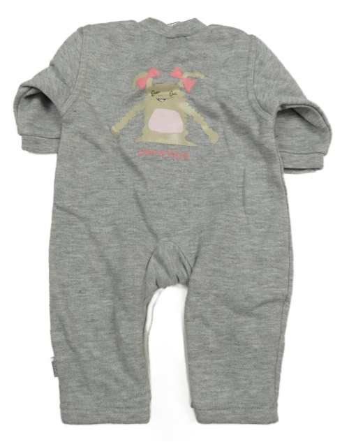 Šedý teplákový overal s nápisem a příšerkou
