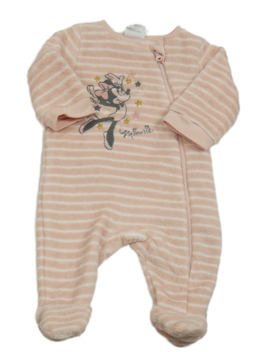Světlerůžovo-bílý pruhovaný chlupatý overal s Minnií Disney