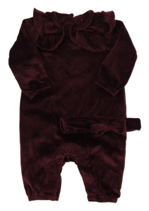 2set - Vínový sametový overal s volánkem + čelenka s mašlí TU