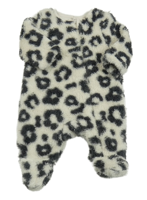 Bílo-šedý chlupatý overal s leopardím vzorem Tu