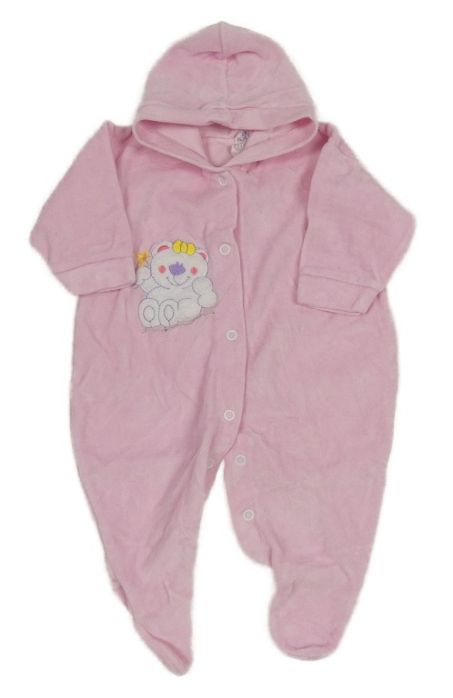 Světlerůžový sametový overal s medvědem a kapucí