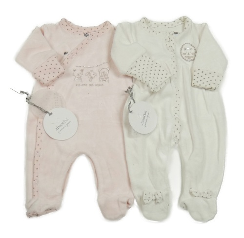 Nové - 2x sametový overal s kočkou bílý+ růžový Absorba