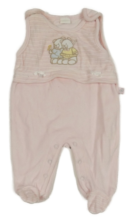 Světlerůžovo-bílé sametové dupačky s medvídky a pruhy