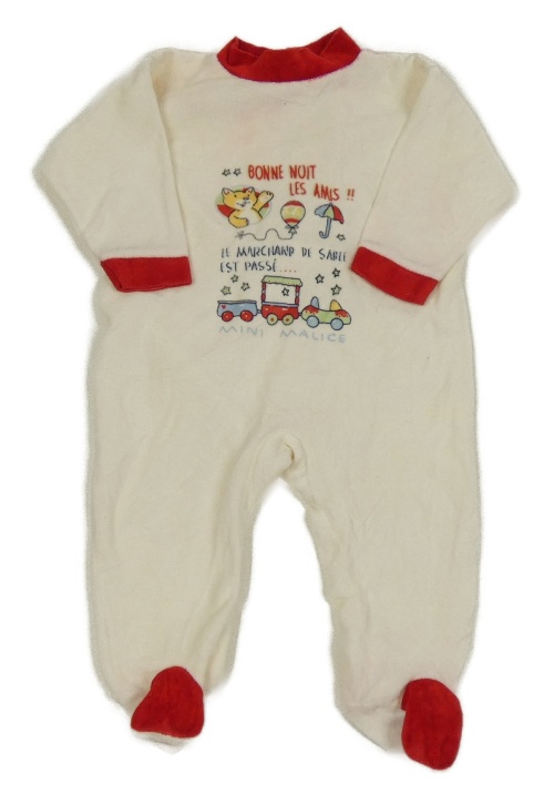 Smetanovo-červený sametový overal s mašinkou