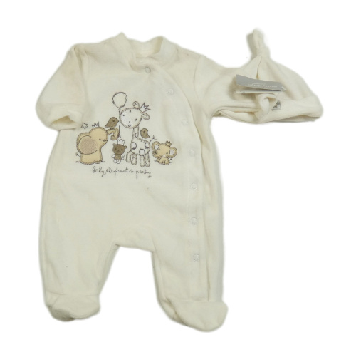 Nové - 2set- smetanový overal s obrázkem+ čepice Early Days
