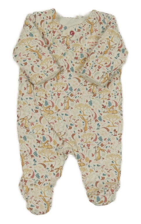 Smetanoco-barevný zateplený overal s listy a králíčky Tu