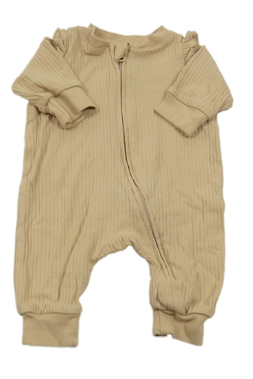 Béžový žebrovaný overal s volánky