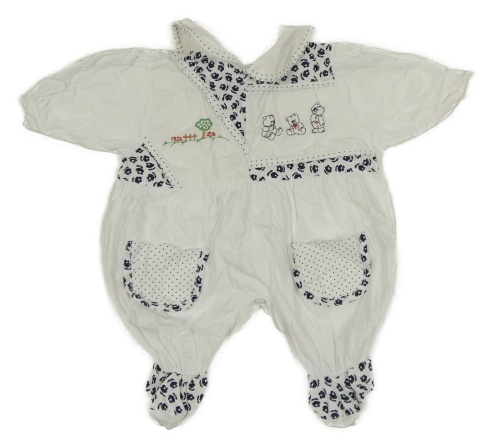 Bílo-tmavomodrý overal s medvědy a límečkem