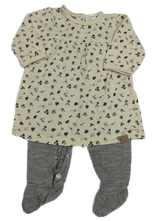 Béžové bavlněné šaty s kytičkami a všitým overalem Topomini
