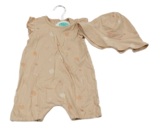 Nové - 2 set - růžový kraťasový overal s mušlemi + klobouček