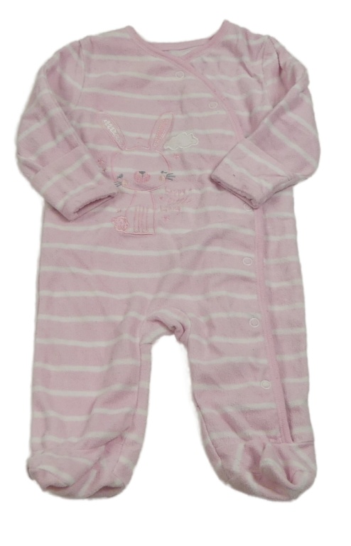 Světlerůžovo-bílý pruhovaný fleecový overal se zajíčkem
