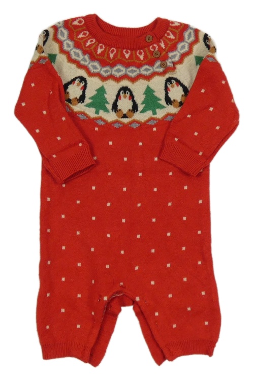 Červeno-béžový pletený overal s tučňáky Nutmeg