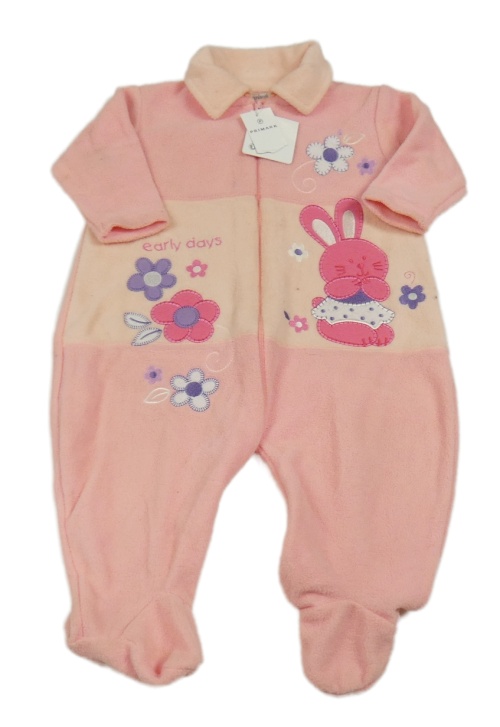 Nové - Růžový fleecový overal s králíčkem a květy Early Days