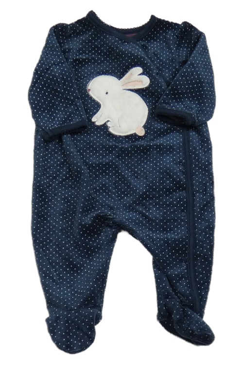 Tmavomodrý puntíkovaný sametový overal s králíčkem C&A