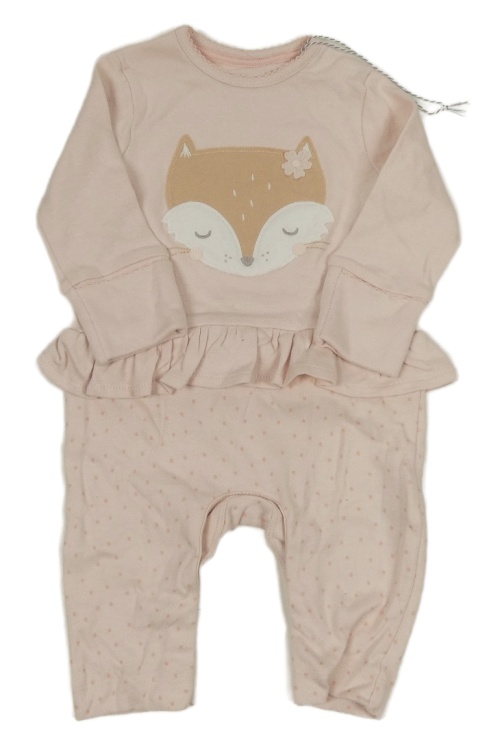 Světlerůžový overal s liškou a volánkem a puntíky Mothercare