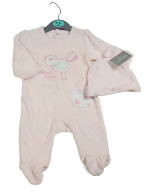 Nové - 2set - Světlerůžový sametový overal s ptáčkem + čepice Early Days