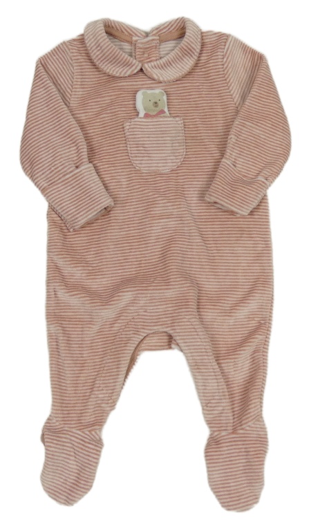 Růžový pruhovaný sametový overal s medvídkem M&S
