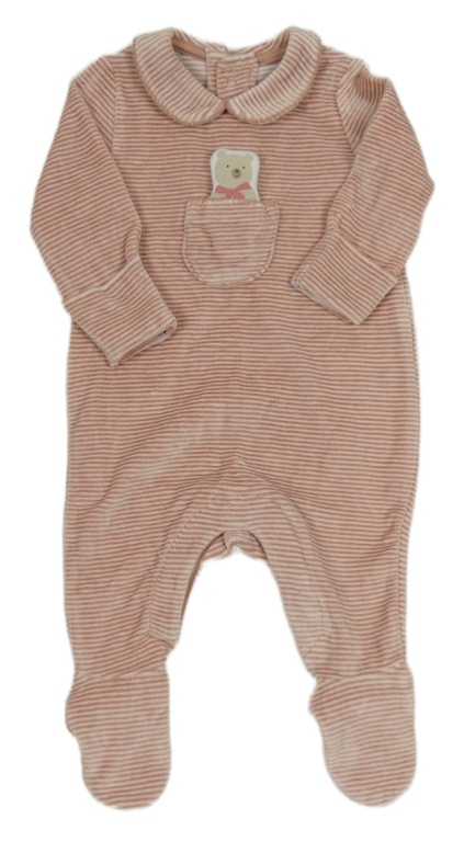 Růžový pruhovaný sametový overal s medvídkem M&S