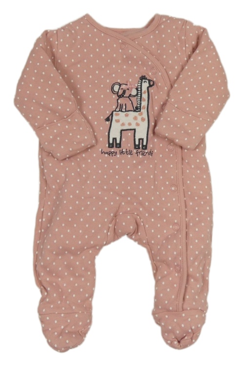 Starorůžový puntíkatý zateplený overal s žirafou a slonem Nutmeg