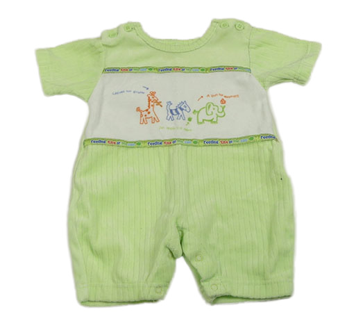 Světlezeleno-bílý žebrovaný sametový overal se zvířátky
