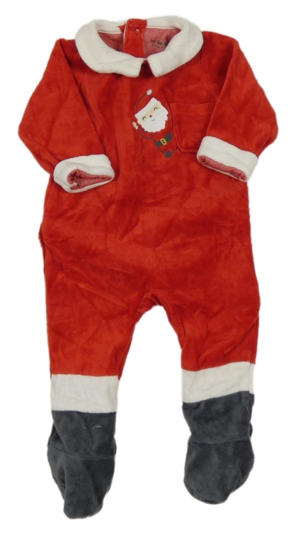 • Červeno-bílo-tmavošedý sametový vánoční overal se Santou a kapsou a límečkem Vertbaudet
