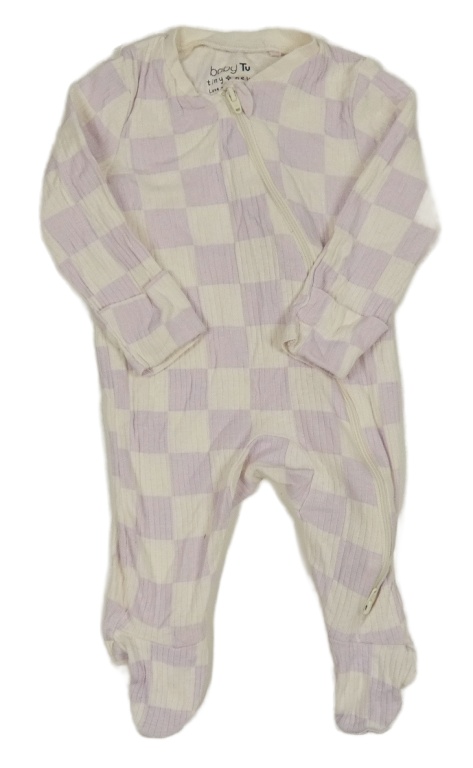 Lila-bílý kostkovaný žebrovaný overal Tu