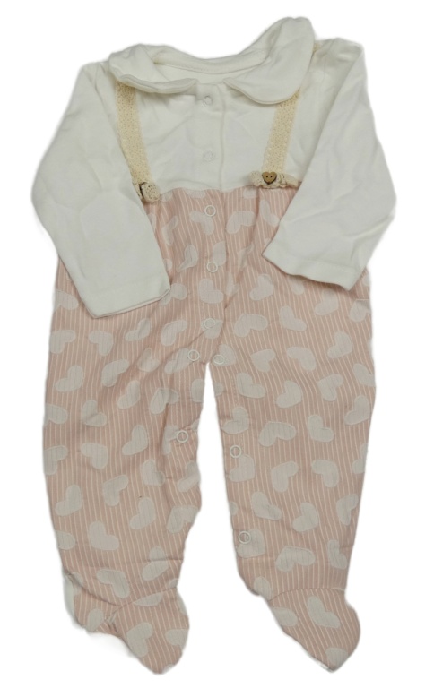 Světlerůžovo-bílý pruhovaný overal se srdíčky a krajkovými kšandami a límečkem Mabidoo