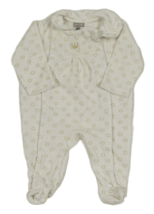 Bílý sametový overal s mraky a korunkou