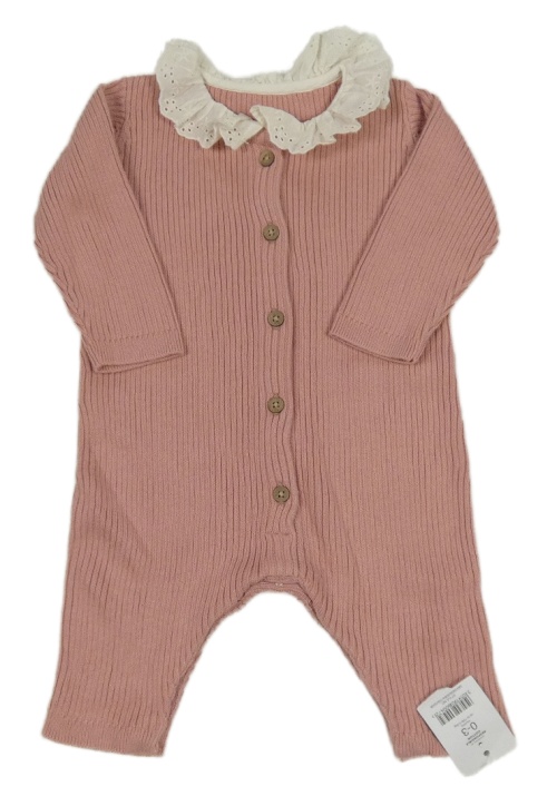 Nové - Růžový žebrovaný pletený overal s límečkem George