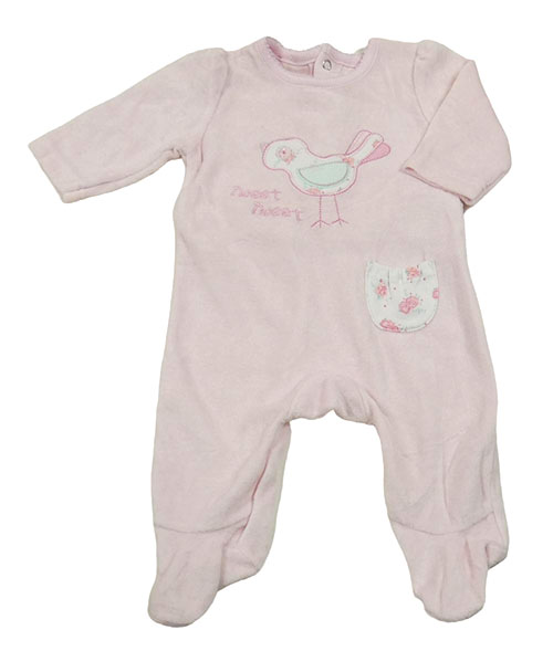 Světlerůžový sametový overal s ptáčkem a kapsou Early Days