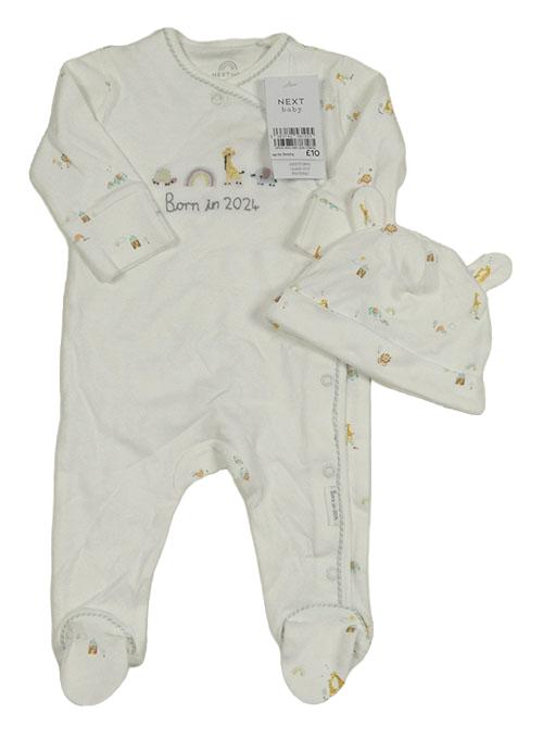 Nové - 2set - Bílý overal se zvířaty + bavlněná čepice Next