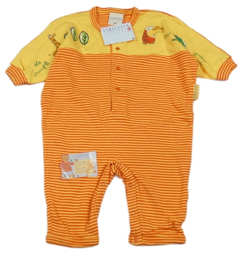 Nové - Žluto-červený pruhovaný bavlněný overal se zvířátky Schiesser