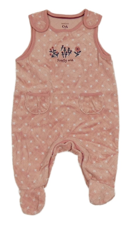 Růžové kárované sametové dupačky s kytičkami a motýlky C&A