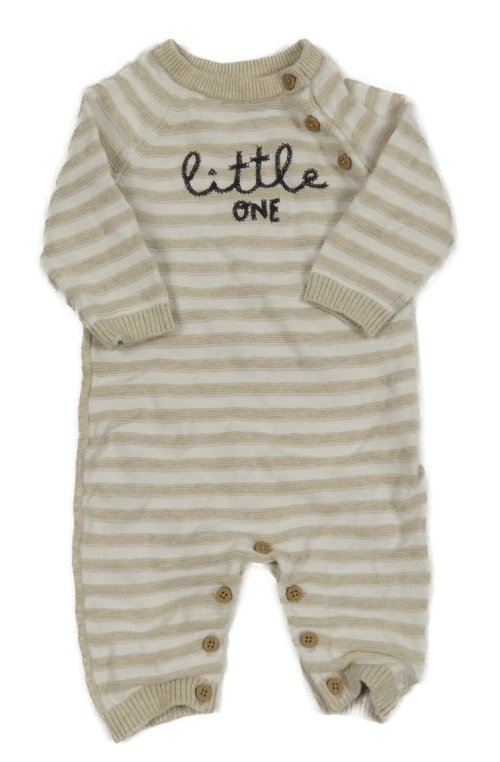 Béžovo-bílý pruhovaný pletený overal s nápisem Nutmeg