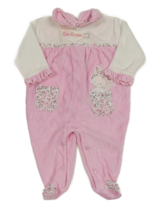 Růžovo-bílo/světlerůžový sametový overal s kočičkou a límečkem ellepi